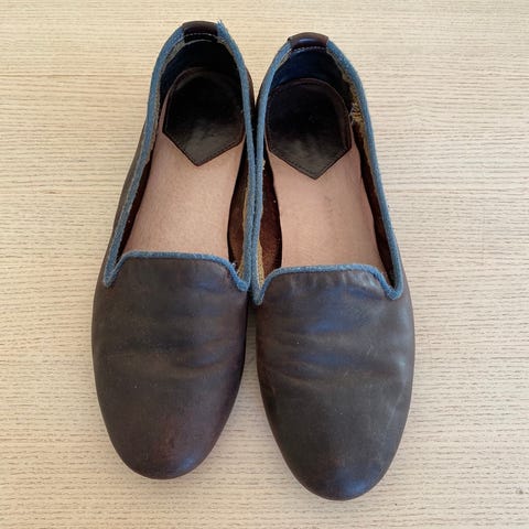 Sorte lave sko i semsket skinn, fine på, lite brukt, st 6.5, tilsvarer vel ca 38. Det er strikk i sidene og bak som gjør at skoene er sammentrukket når de ikke er på. De er for små, derfor selges de. De er pyntet med fine sorte swarovski krystaller.