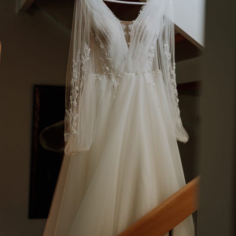 Selger den nydelige brudekjolen min med navn Diaz fra merket Anna Novia i størrelse 36. Følte meg veldig fin i denne og den er komfortabel å ha på. Kjolen har en hempe slik at slepet kan henges opp bak.