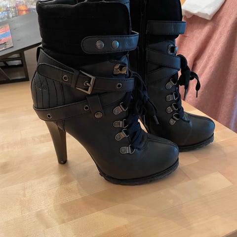 Veldig pen brukt. Svarte ankelstøvletter med brune hæler. Kjøperen betaler for frakt.