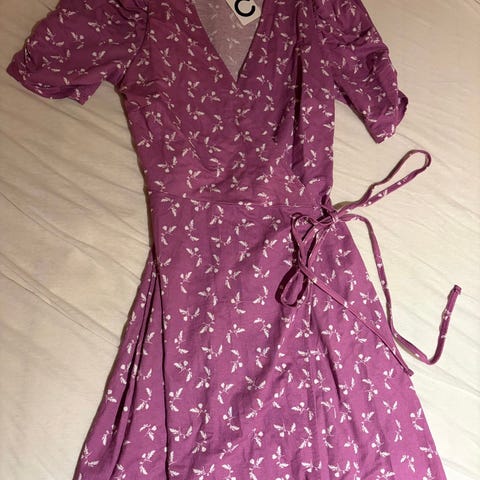 Selger en supersøt lille kjole. Passer fint som julekjole. Fargen er mest riktig på de siste bildene. Har ikke verdens beste kamera, og sliter med å få frem fargene på klærne ordentlig. Den er såvidt prøvd på. Kan ikke se et eneste merke på den. Men kan ikke garantere noe da den har vert med på flyttelasset 🤭