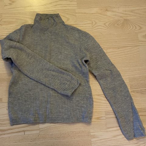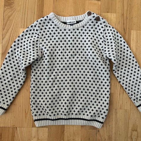 POMPdeLUX genser i en grå farge, størrelse 110. Denne unisex genseren er laget for barn og passer perfekt til hverdagsbruk. Den har en klassisk design med ribbestrikkede kanter og høy hals
