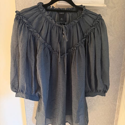 Stilig maritim bluse fra «Hauber - Made in Germany». Passer S-M. Noe gjennomsiktig.