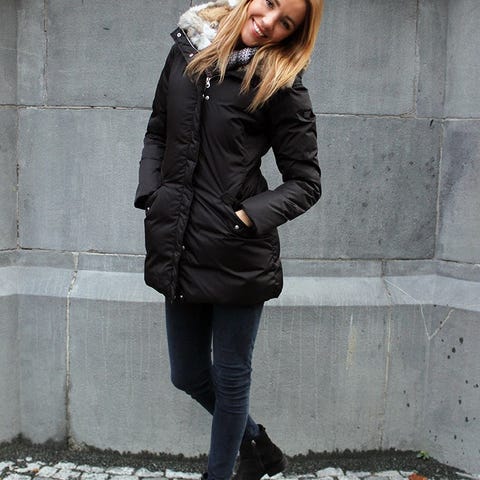 This coat creates a flattering silhouette with a fitted waist. Its paired down look turns the focus onto the delicate detailing. Made from the water-repellent outer fabric, insulating goose downs, and caressing rabbit fur, this coat is very cozy and is warming to very low temperatures.