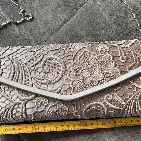 Vesken er spesiell, med en slags "boblet" forside. Den har innerlomme med glidelås, og løs håndrem som kan festes i glidelås-ringen.