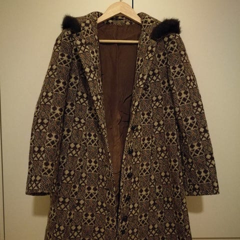 Vakkert elegant retro kåpe i klassisk modell som passer perfekt til alle generasjon. Kåpe med fōret innside. En fin høstjakke. Med to lommer. Materiale ull og polyamid. Lengde 95 cm. Farge grå og lysegrå.