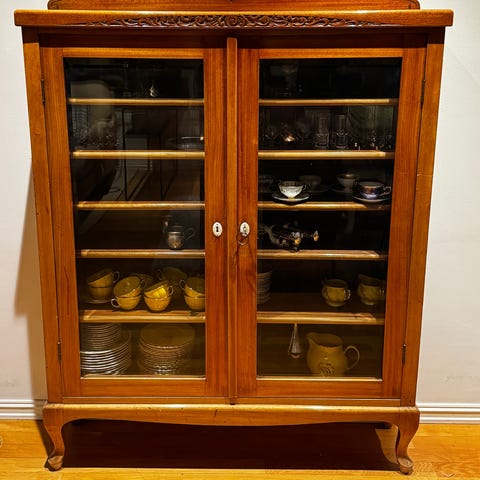 Selger et pent gammelt skap, som trenger et nytt hjem. Det er laget i heltre men er malt sort. Det er i bra stand, men trenger nok et nytt malerstrøk. Må hentes på Torstad.
