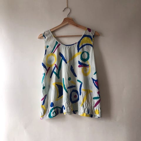 Monki svart og hvit topp / skjorte uten ermer, med ansikts motiv, størrelse XS, vil også passe en small