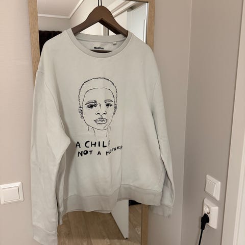 Hvit sweatshirt med sort trykk fra Bene Culture. Ubrukt, men lappen er tatt av. Deilig, børstet innside.