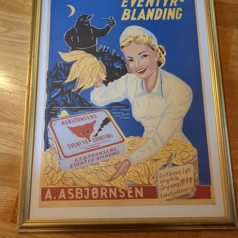 4 stk Tobakk plakater fra Asbjørnsens tobaksfabrik 45x30 cm