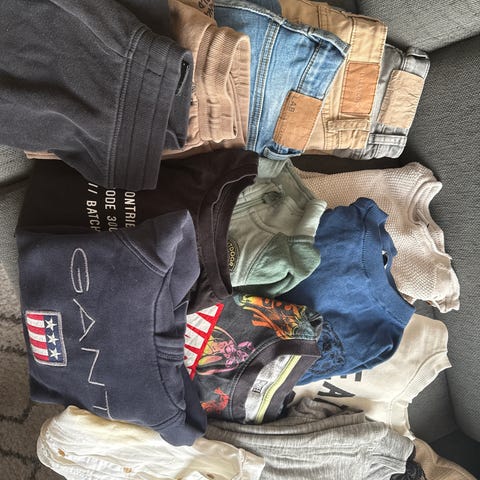 Klespakke med bukser, genser, dongerishorts og T-skjorter