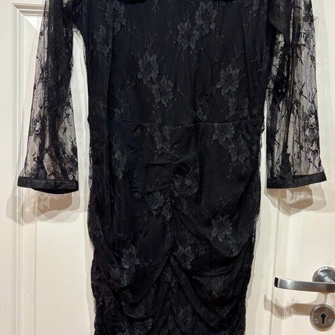 "Den lille sorte" med fint blondestoff på hele fremsiden, armer og baksiden av skjørtet.