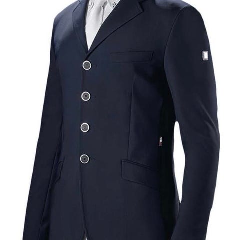 Equiline X-Cool teknisk stevnejakke for dame i marineblå farge. Jakken er designet for konkurransebruk med funksjonelle og tekniske materialer som gir komfort og bevegelsesfrihet. Jakken har knappelukking foran, og detaljer som sikrer god passform under aktivitet. italiensk str 42 tilsvarer str 38-40