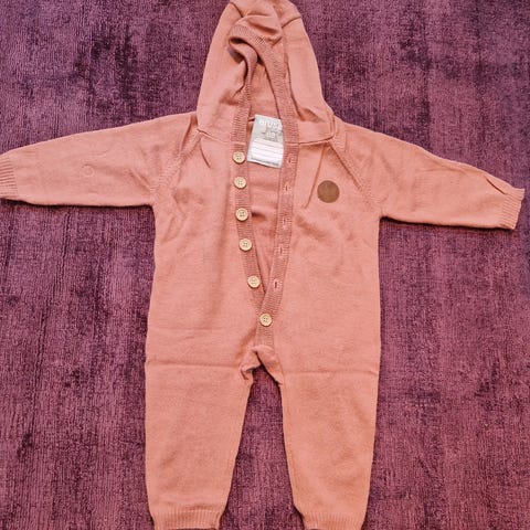 Søteste settet. To-lags bomullsdress i dus rosa fra Name it og strikkelue med ugle, glitter i garnet og snøring. Denne har rosa fleecefor inni.