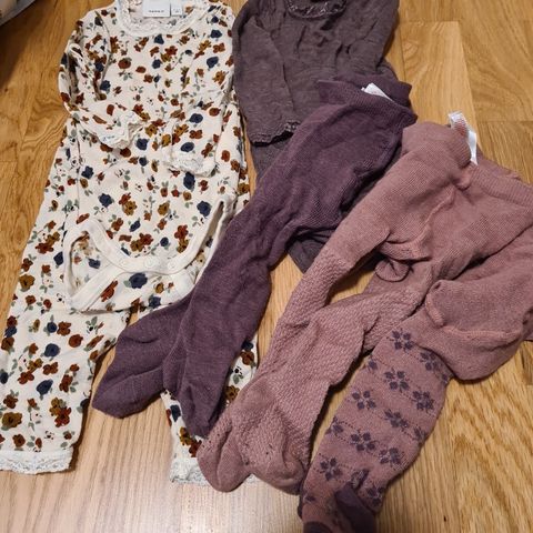 Pent brukte klær. Nøytrale farger. Ingen hull. Fire bodyer og tre tynne heldresser. Selges samlet. Kan sendes.