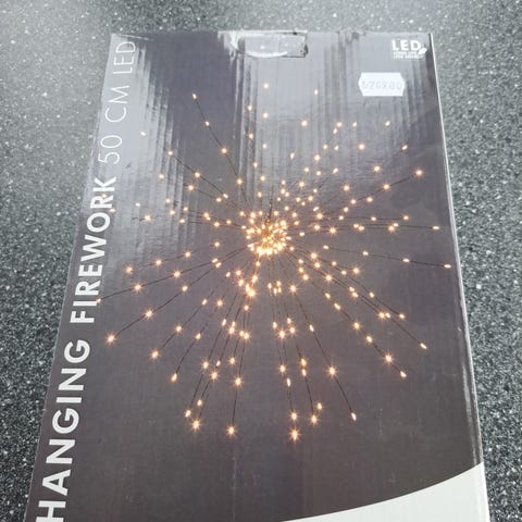 Ca 23 cm høy. Du kan velge farge, og om den skal blinke, hastighet. Følger med ledning og fjernkontroll.