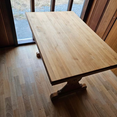Stort og massivt bord laget av snekker.