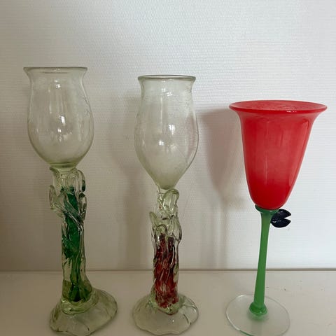 Meget pene. Fremstår som nye. Kun stått på pynt en liten periode. Selges samlet for 400kr.Glassene er fra Glasshytta i Gamle Fredrikstad.Se gjerne mine andre anonnser