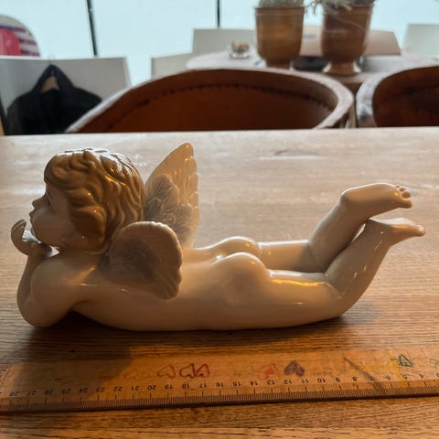Fine vegghengte englar i gips, 75 pr stk (fløyte er solgt)