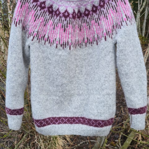 Strikket i alafaslopi,kan passe til str M. Har også helt maken i str S