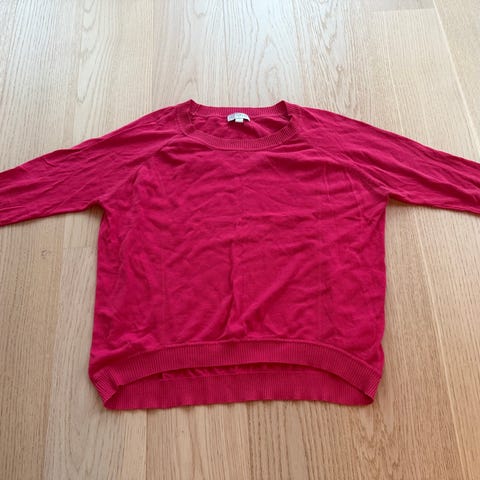 Flott romslig vinrød genser som sitter løst på. 3/4 ermer. Sitter inntil nede, siste stykket på ermene