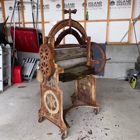 Selger gammel klesrulle som dekorasjon , da den ene rullen har sprekker .