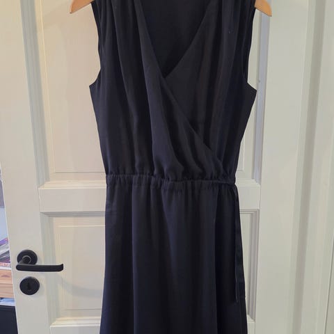 Pen svart festkjole, str 34 , med plisseeskjørt og blonde detaljer, helt ny, aldri brukt, glidelås, fra Moods of Norway. Selges for 850 Kr, ( ny pris var - se på etikett , som fremdeles er på kr 1799,- )