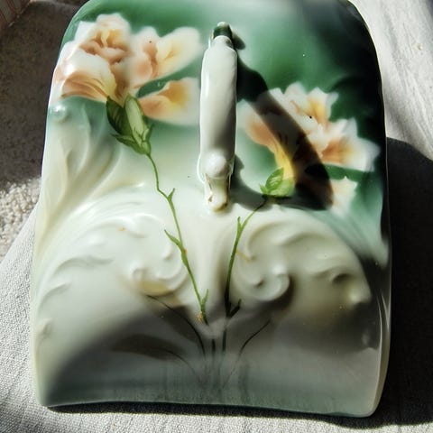 Oldemors osteklokke porselen eller stentøy, ikke sikker.