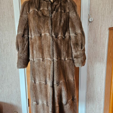 Brunsort bisamkåpe med hatt kr. 2200