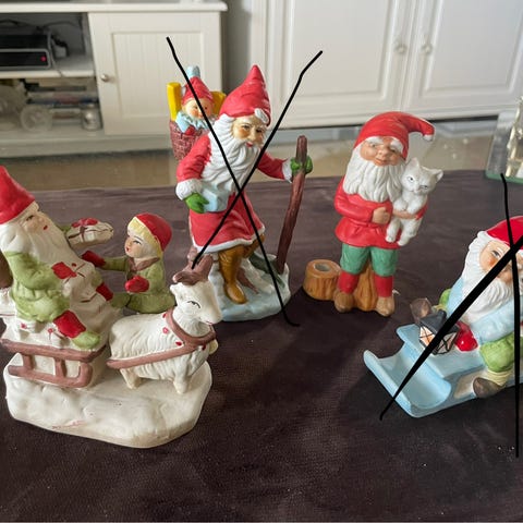 Gammel keramikk nisse sittende med en liten gutt foran seg med sekk med gaver. Skjønn utforming, fin julepynt, hel og fin. Kr 60, Kan sendes pakkes godt🎅🏻🎄🌟evt avtale overlev Oslo