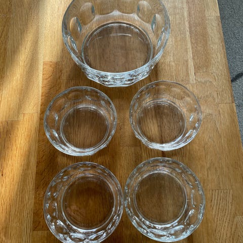 6 Nordlys geleskåler / dessertskåler i pressglass fra Hadeland glassverk selges.
