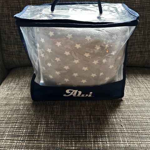 Mawok hengevugge som kan festes til vegg eller henges over dørkarm. Oppbevares i hendig veske og kan enkelt tas med på tur. Var uvurderlig da vår ene tvillinggutt hadde kolikk.