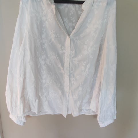 Veldig fin feminin bluse/skjorte i sateng med fine dotter. Har brukt den én gang.
