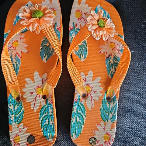 Fine flip flopper i jute med stor blomst str 41. Pris er med porto for sending. Velg farge