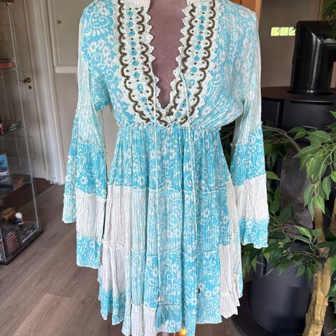 Lett og deilig silkeskjorte, blåtoner med fine detljer.