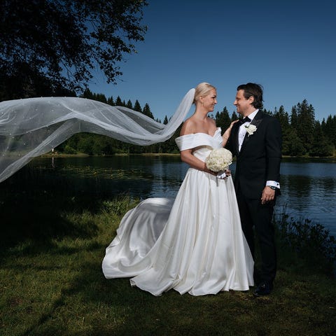 Nydelig brudekjole fra det italienske merket Nicole. Modellen heter Aurora Spose AU 12191. Kjolen er kjøpt på Kristins brudesalong i april 2022. Den er kun brukt én gang og er i veldig god stand. Kjolen er i str. 34/36, men er tilpasset av skredder på Kristins brudesalong til min fasong og høyde på 164 cm, vil si kjolen tilsvarer mer en 36/38 med dagens mål.