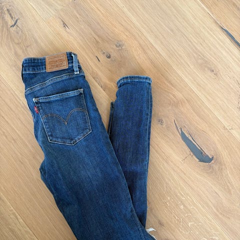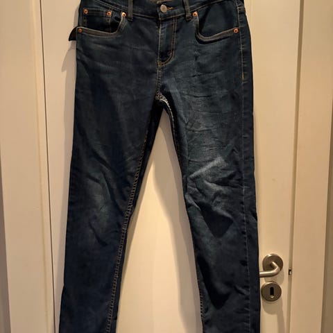 Pent brukt olabukse, i lyseblå. Dongeribukse.