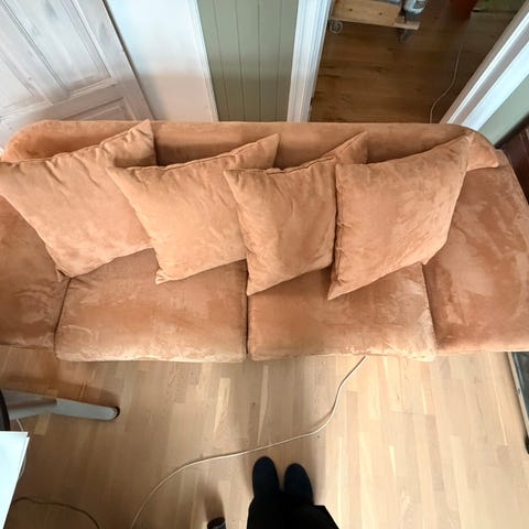 Fargen er lysebrun. Materialkvaliteten kan rengjøres med en litt fuktig klut.