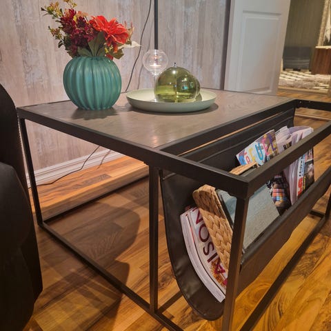 Kadziai Sofabord 120 cm med Oppbevaring Hylle - Glass/Hvit/Svart