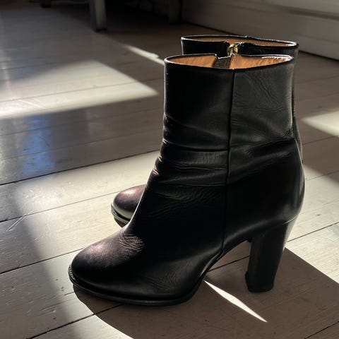 Støvletter med glidelås i siden. 8 cm hæl. Høyt skaft.
