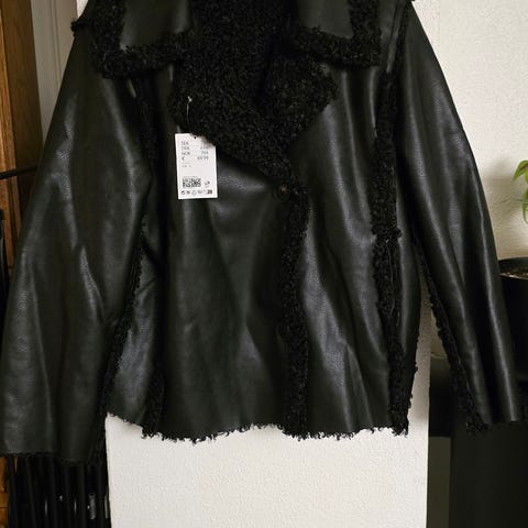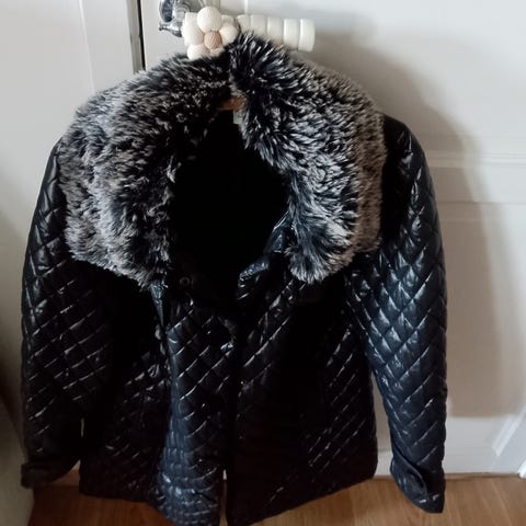 Aktuell og flott jakke str L. En ordentlig skatt. Flott kvalitet. Fremstår som ny. Har vært lite brukt, kanskje en til 2 ganger.. svart med sølvbånd på skuldre.