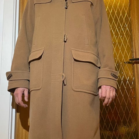 Vintage Hettemarks duffelcoat i ull og kashmir. Størrelse 38, men romslig fasong. Fine detaljer. Kåpen har glidelås i tillegg til knapper.