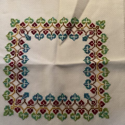 Pent brodert med korsting. ( tellesøm ). Håndarbeid.