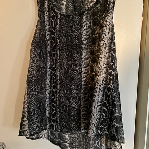 Greige topp med trekvart ermer og metalldekor i halsen fra Max Volmary i størrelse 38. Omkrets bryst er 102 cm, livvidde 100 cm og lengde 58/66 cm (lengre bak). Laget av 97% viskose og 3% elastan, god stretch i stoffet. Pent brukt uten flekker eller skader.