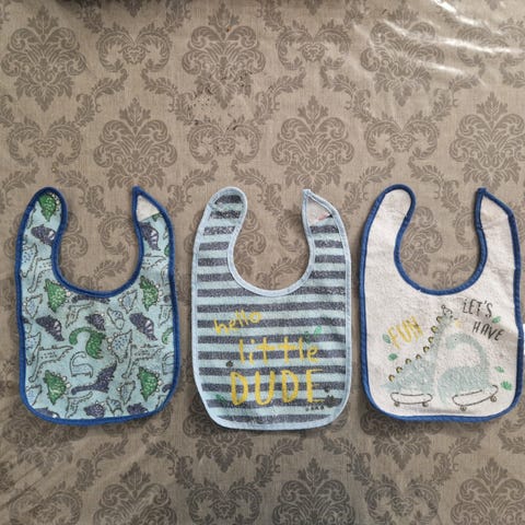 Ubrukt 2-pk med smekker med bamse motiv 🐻 Terry/frotté stoff foran og PU-coating på baksiden.
