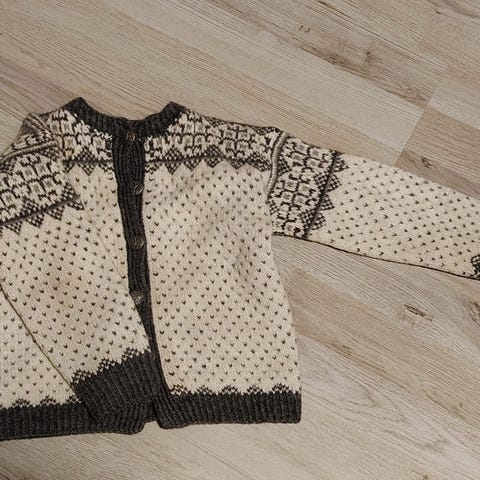 Ubrukt ullgenser selges. Hjemmestrikket til 3 åring.