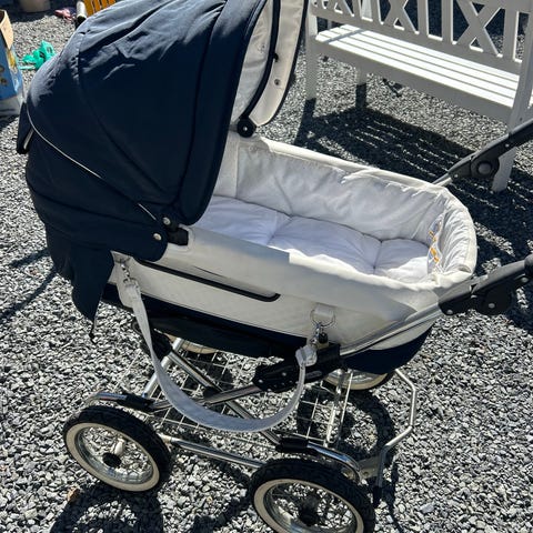 Fantastisk god vogn. Vognen er god å kjøre, også i snø på grunn av de store hjulene. Bagdelen er såpass stor at den fint kan brukes opp til 1 år. Sportsdelen er opp til 3 år og er god plass til vognpose og er god å ligge i når ryggen legges ned. Vognen er pent brukt og oppbevart inne, ikke røyk eller dyr. Hatt madrassbeskytter under vognpose. To av hjulene har fått ny slange. Vognen har innebygd solbeskyttelse og insektsnett i skjermen. Selger med regntrekk, koppholder, kroker til veske og trekk til hjulene. Kan også få med søskenbrett.