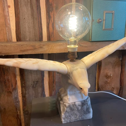 Art deco italiensk alabast & leopard. Ørnelampe i marmor med globeskjerm ca 1920.