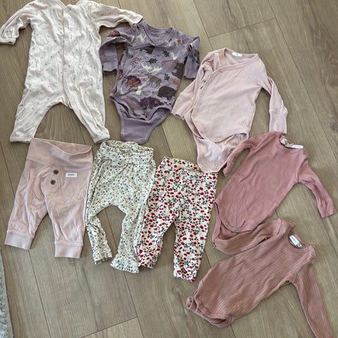 Stillongs i samme mønster som den hvite bodyen. Denne er i str 92, men er romslig i str og settet er brukt samtidig. Selges samlet for 600 kr.