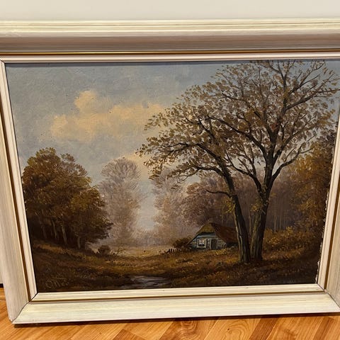 Maleri, « landskap»Str 60 x 50, olje på lerret. Fine høstfarger, og pen ramme.