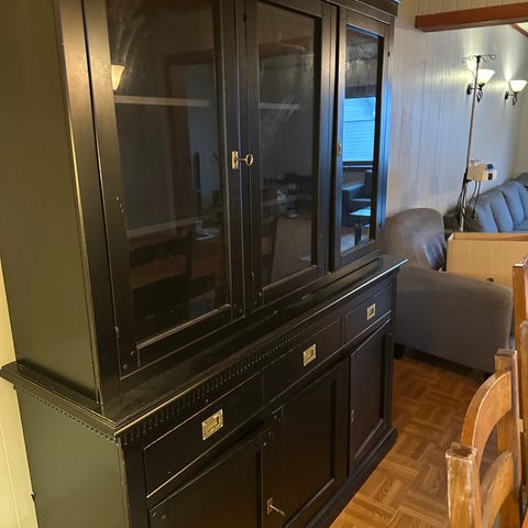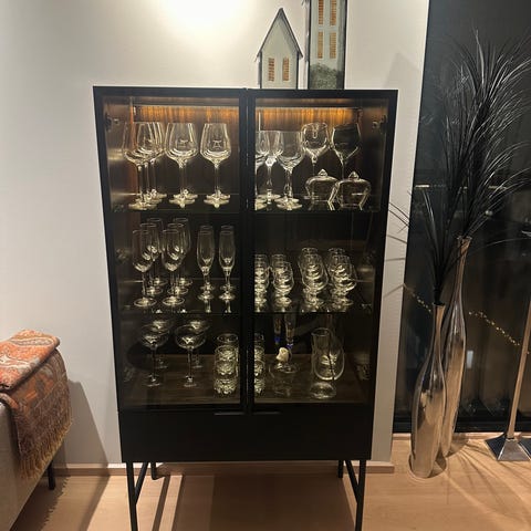 Solid skap i stål og glass. Dette fremstår som nytt.
